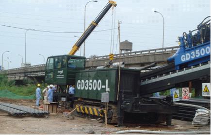 該段工程位于中山市民眾鎮(zhèn),地質(zhì)狀況復雜、加上梅雨季節(jié)、臺風天氣的影響,施工難度較大。燃氣分公司精心組織、合理施工,此次穿越管徑為φ508×11.9mm、材質(zhì)L360直縫埋弧焊接鋼管、長度1250米,采用GD-350大型水平導向鉆機。此項目還有小欖水道、雞鴉水道、石岐河三條長距離穿越管道,是中山市天然氣利用工程的重要組成部分。