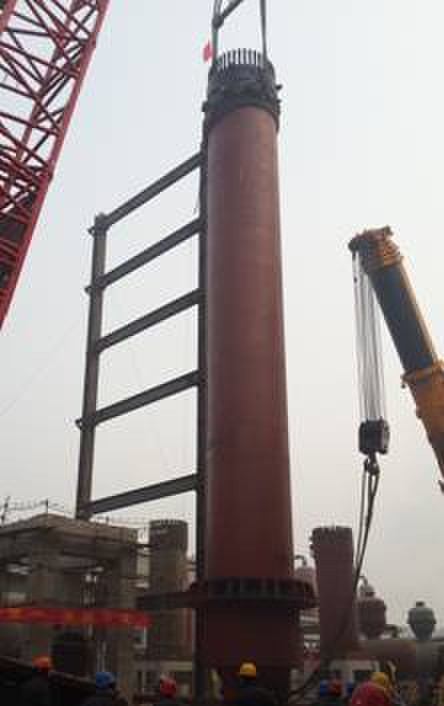 煤化工分公司河北東光項(xiàng)目部成功吊裝494噸氨合成塔