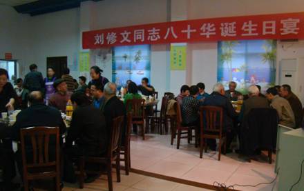 公司為八十歲退休職工劉修文舉辦生日壽宴