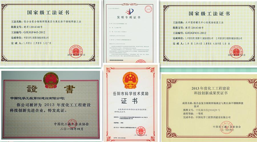 在這春暖花開的日子里,從國家知識產權局、建設部、岳陽市科技局等傳來陣陣喜訊:建筑工程分公司嚴偉申報的“復式冷箱基礎施工方法”和西北分公司羅長彪申報的“托普索徑流合成塔催化劑裝填配套機具”被國家知識產權局授權為國家發明專利和實用新型專利;“低合金復合鋼堆焊隔離層與奧氏體不銹鋼焊接工法”和“大中型球罐無中心柱現場組裝工法”榮獲由中華人民共住房和城鄉建設部頒發的國家級工法證書;“中石化長嶺分公司油品質量升級改造項目240萬噸年汽柴油加氫裝置安裝工程”榮獲由岳陽市政府頒發的重大工程科技成果二等獎;“低合金復合鋼堆焊隔離層與奧氏體不銹鋼焊接技術”榮獲由中國化工施工企業協會頒發的2013年度化工工程建設科技創新成果一等獎;公司榮獲2013年度全國化工工程建設科技創新先進企業光榮稱號。