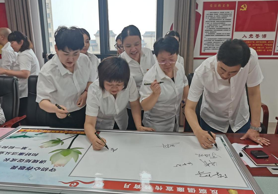 5月27日,中化勞務黨支部組織開展了“反腐倡廉宣傳教育月”主題簽名活動。活動中,全體到會人員在簽名版上簽上了自己的名字,表達扣好廉潔從業“第一粒扣子”的決心與信心。