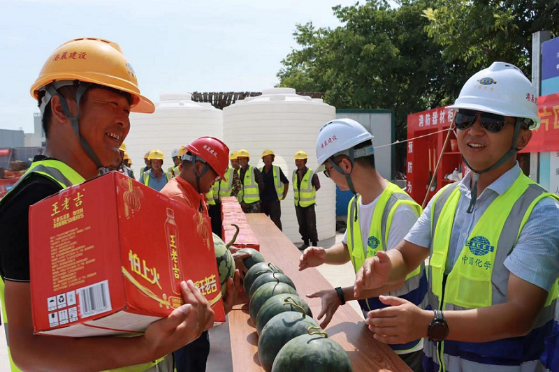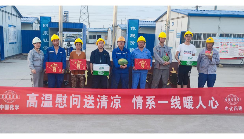 7月15日,東北公司在滄州旭陽化工項目組織開展“高溫慰問送清涼、情系一線暖人心”活動,為一線職工送去西瓜、涼茶、藿香正氣水等防暑降溫物品,并叮囑做好防暑降溫工作,預防各類事故發生,為項目竣工投產作貢獻。