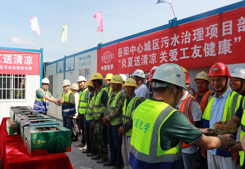 近日,岳陽中心城區污水治理項目部在云溪片區107頂管開展“炎夏送清涼 關愛工友健康”慰問活動,為高溫下堅守項目一線的