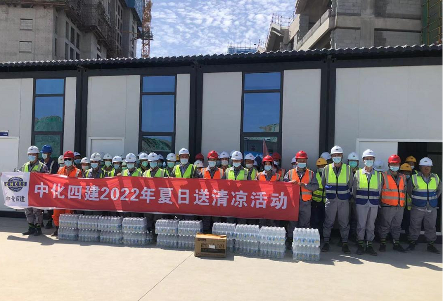 近日來,西安地區開啟高溫模式,氣象臺連續發布高溫紅色預警。為保障員工身體健康,華東公司西咸新區項目部組織開展“夏日送清涼”活動,為施工人員送去防暑降溫物品和藥品,并反復叮囑施工人員提高防暑意識,在保證安全生產的同時做好自我防護,合理調整工作時間,勞逸結合,確保各項工作有序開展。