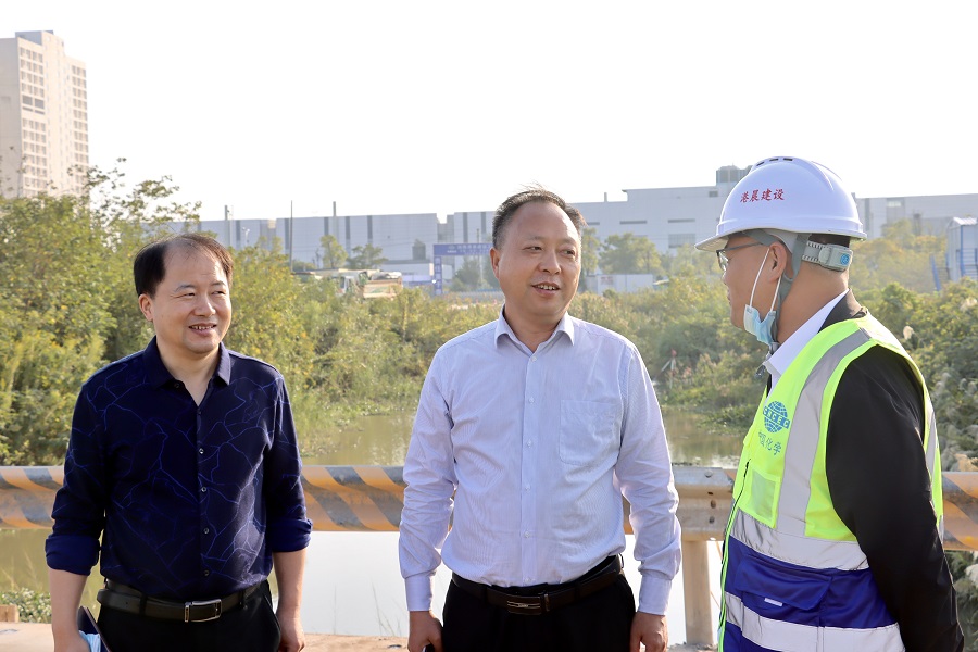 10月18日,城陵磯新港區黨工委書記李建華到岳陽自貿片區產業綜合體建設項目調研項目推進情況。