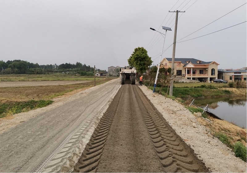 針對農村公路道路狹窄、來回轉運耗時耗工的問題,為助力項目又快又好完成任務。市政工程公司岳陽鄉村振興“四好農村路”項目部在S209西塘段公路試點采用移動式破碎機施工和“就地冷再生水穩下基層”這兩項新型工藝,并取得實際成效。