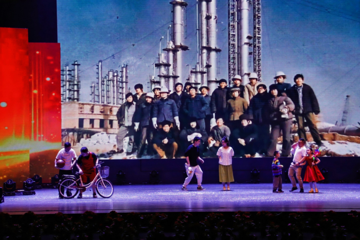 中化勞務和中化地產公司聯袂表演的原創音樂劇《我們的芳華》,通過描繪花板橋的梧桐樹、采擷兩小無猜花的詩意,以及四化建人南征北戰的故事,不僅表達了對公司的熱愛,更融入了職工醫院、子弟學校、四化大院等老四化建的元素,勾起了無數職工的情感共鳴。