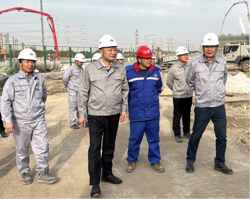 1月14日,中國(guó)化學(xué)四化建黨委書記、董事長(zhǎng)周鴻到江西公司承建的上海璞烯晶項(xiàng)目開展節(jié)前安全帶班檢查。