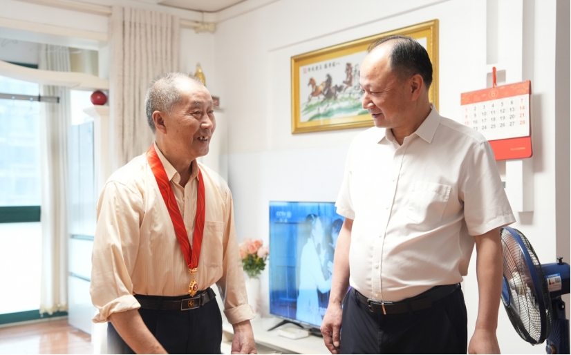 在中國共產黨成立104周年之際,6月26日,中國化學四化建黨委書記、董事長周鴻看望慰問老黨員曾道群、王道南,向他們頒發“光榮在黨50年”紀念章,代表公司黨委向他們致以崇高敬意和誠摯問候,感謝他們為公司發展作出的貢獻。