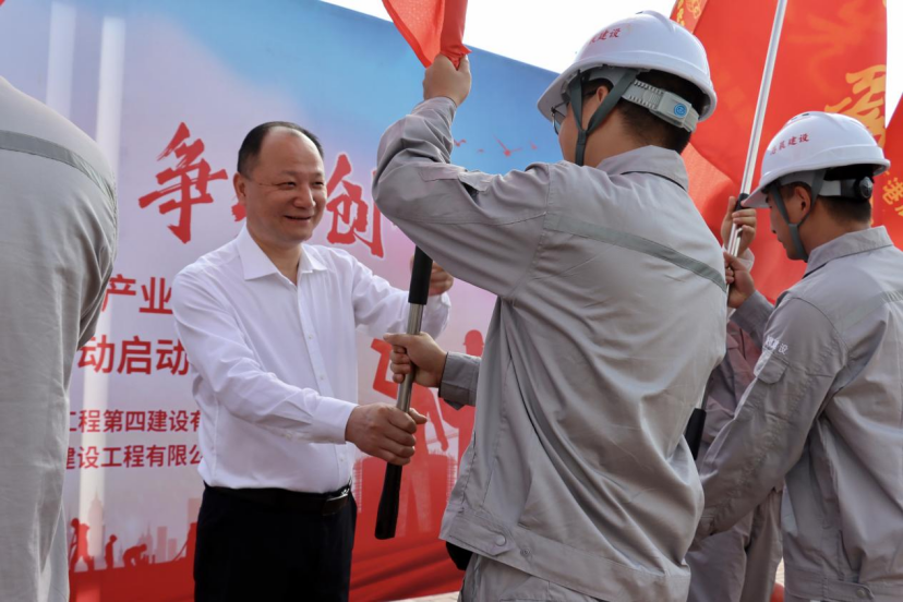 5月24日,公司在岳陽自貿(mào)片區(qū)數(shù)字經(jīng)濟(jì)產(chǎn)業(yè)綜合體建設(shè)項(xiàng)目舉行2023年度勞動競賽啟動儀式,吹響“爭先創(chuàng)一流,決戰(zhàn)決勝實(shí)現(xiàn)百億化建目標(biāo)”大干號角。公司黨委書記、董事長周鴻,工會主席、監(jiān)事會主席胥正旺出席儀式,并為項(xiàng)目部“工人先鋒隊(duì)”“黨員先鋒隊(duì)”和“青年突擊隊(duì)”進(jìn)行授旗。公司相關(guān)部門、港晨公司和項(xiàng)目部共140余人參加。