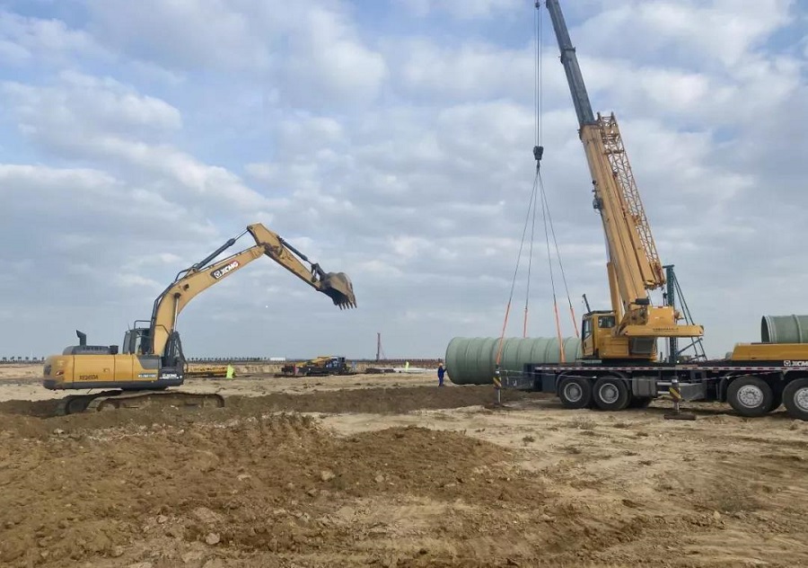 此次開工的公用工程項目主要包括13、14標段的給排水及消防管網(wǎng)工程。由于工程地管口徑大,其中海水管、雨水管、循環(huán)水管最大直徑分別為DN3200、DN4200、DN2600,多條管線并排放置,基坑開挖深度超過9米,總長度超過26千米,工程量大,標準要求高。同時,又因施工區(qū)域為填海造陸,降水排水工作任務重,施工難度增加。