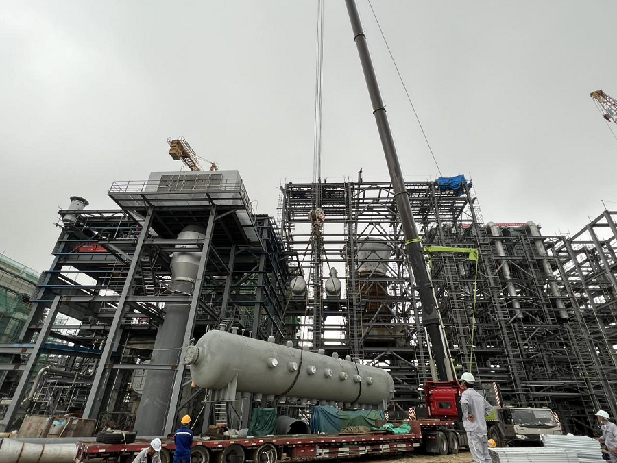 中化勞務(wù)廣東東粵環(huán)保項目順利完成兩臺汽包吊裝