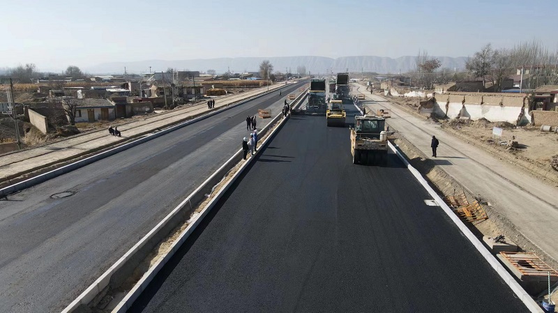 西部公司蘭州榆中項目完成最后一段瀝青攤鋪