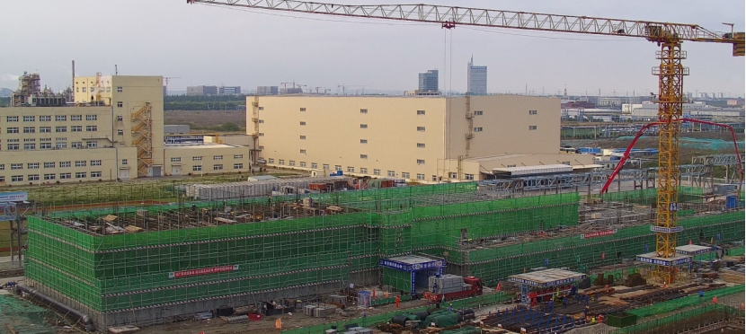 中化勞務公司岳化新材料項目主裝置聚合廠房封頂