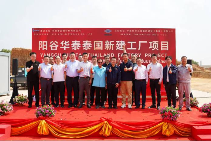 2月22日,由公司承建的首個橡膠助劑項目——陽谷華泰泰國新建工廠項目舉行開工儀式。山東陽谷華泰化工股份有限公司董事長、總經理王文博,華泰泰國新材料有限公司總經理王文一,泰國當地政府和公司國際業(yè)務部負責人出席并致辭。