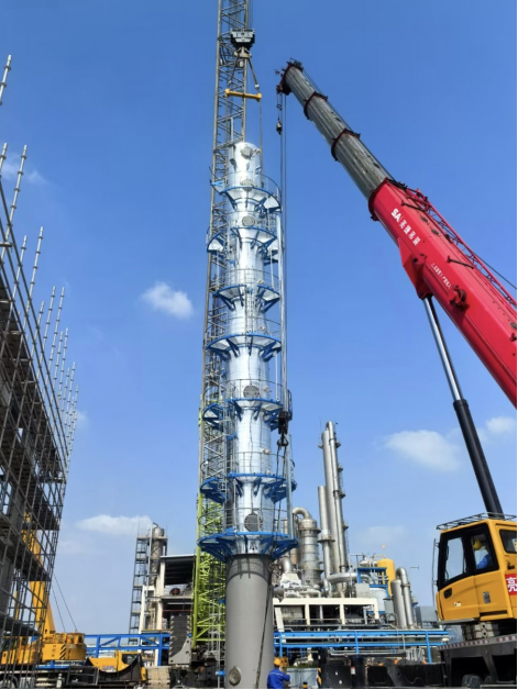 公司衛(wèi)星石化項(xiàng)目完成首臺核心設(shè)備吊裝